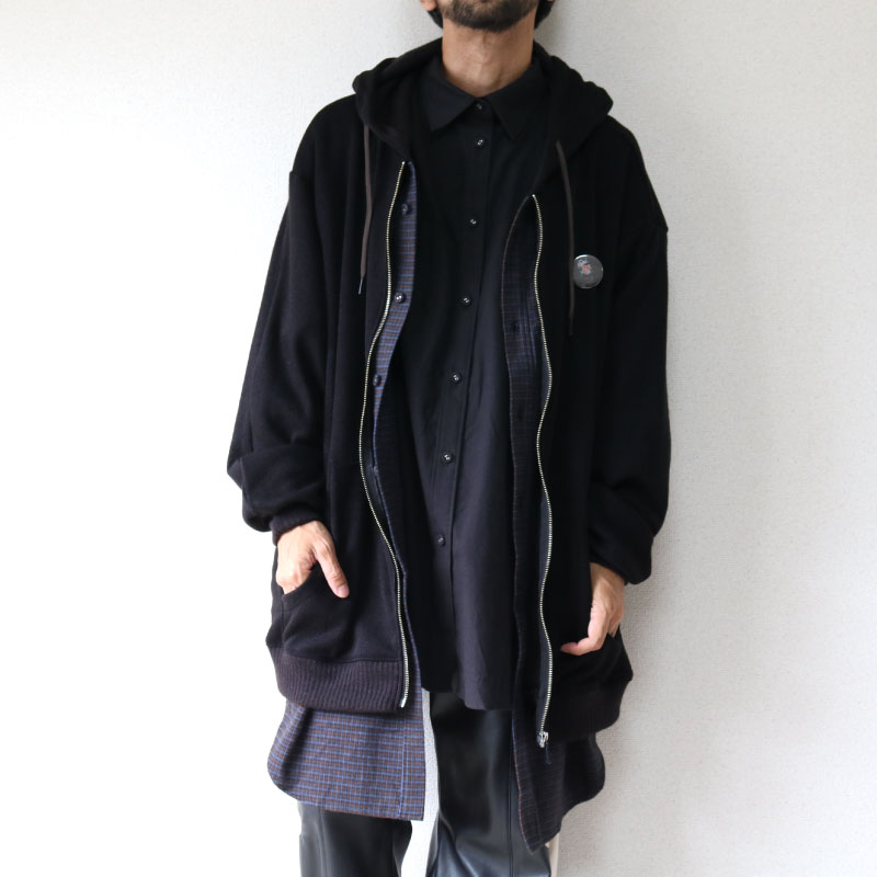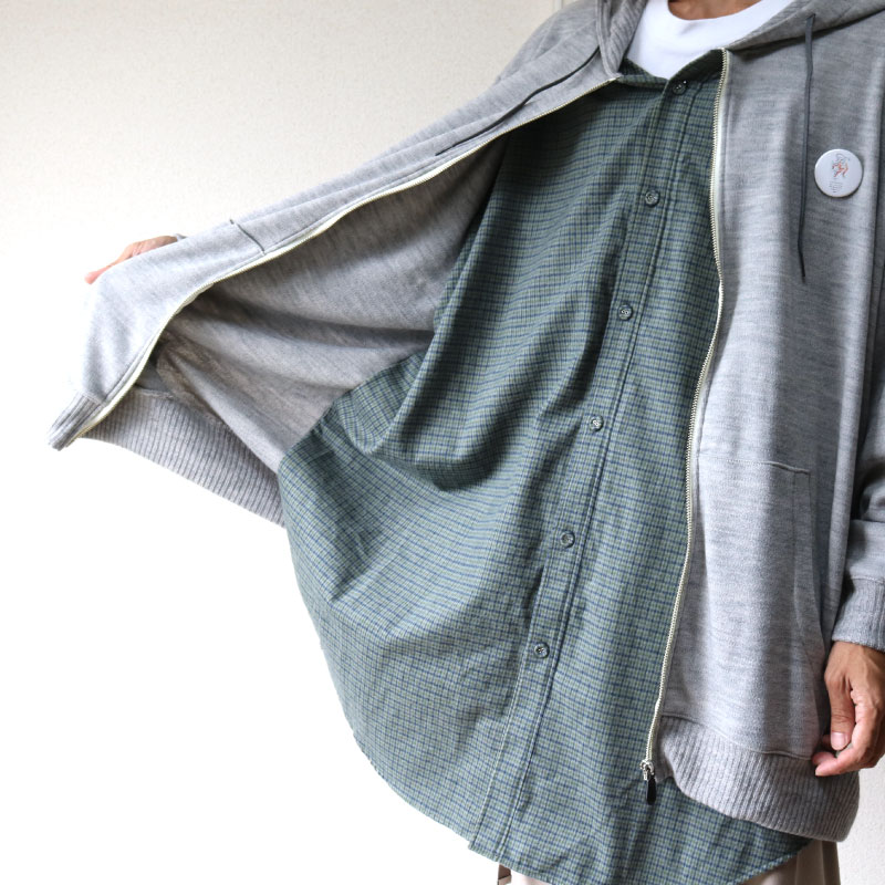 外のフーディ部分はポリエステルでのセーター地。